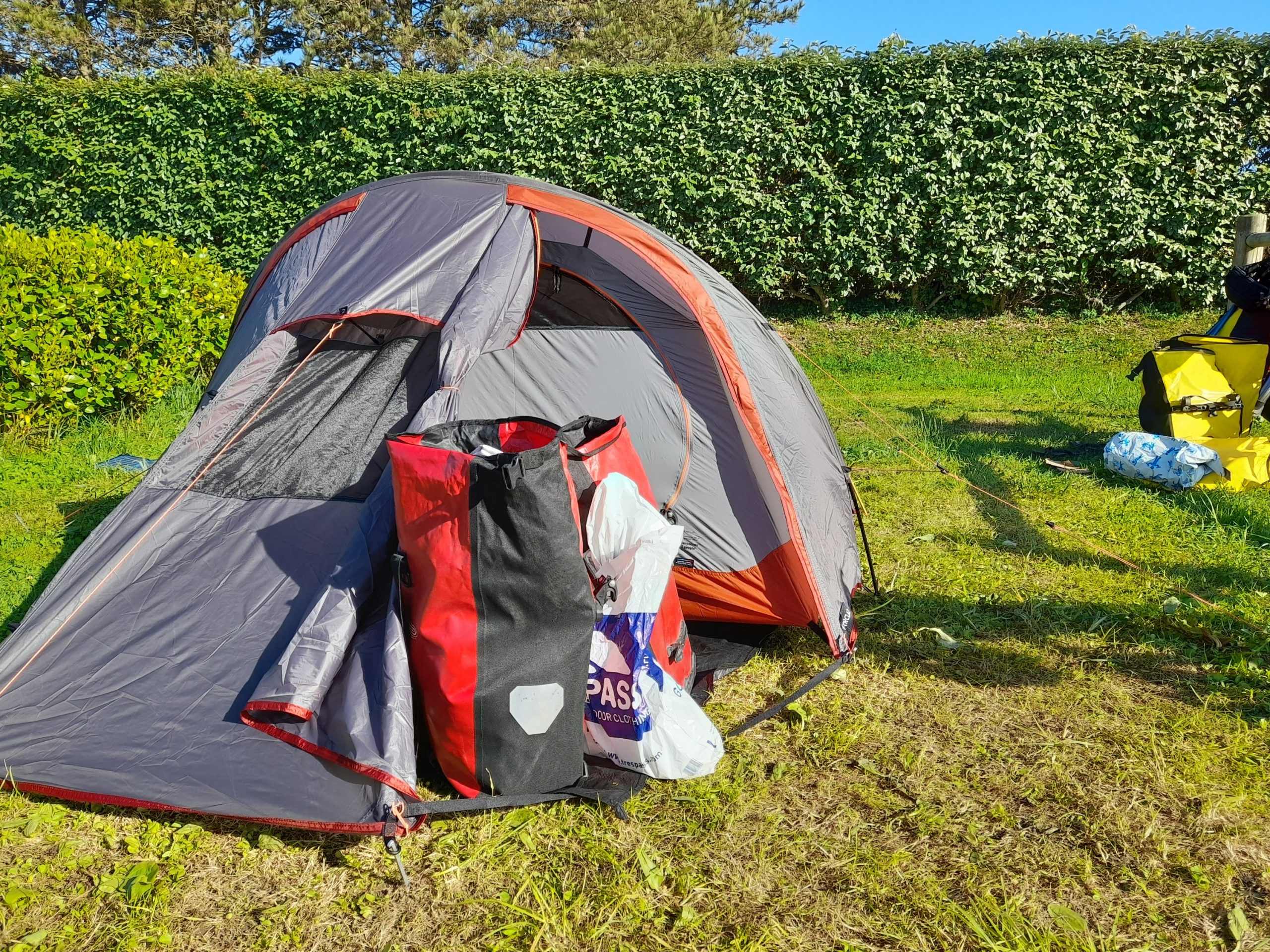 We finally arrived at our camping spot at Camping Minicipal de Clairefontain around 5.00. This is the first time of using our tent a d the pretty pictures showing how to erect it weren’t very helpful.